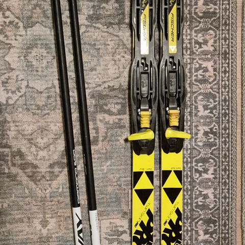 Lasten Fischer sukset, kuin uudet. Suksien pituus on 98cm ja sauvat 110cm. Ei taida sauvat olla ko paketin, mutta mukaan saa.