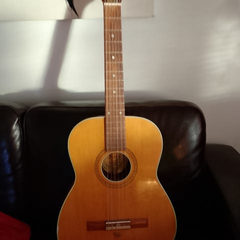 Landola FL-20 akustinen kitara. Lapselle aikoinaan ostettu. Varmasti virityksen tarpeessa, mutta ehjä ja siisti.