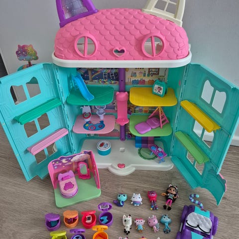 Gabbyn nukketalo osia puuttuu kuten talon takaa pahvit, mutta kelpo vielä seuraavalle leikkiin.