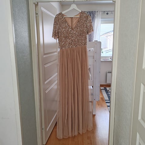 Sisters Point valkoinen mekko, koko M. Kauluksessa paljettikoristelu. Väljä malli.