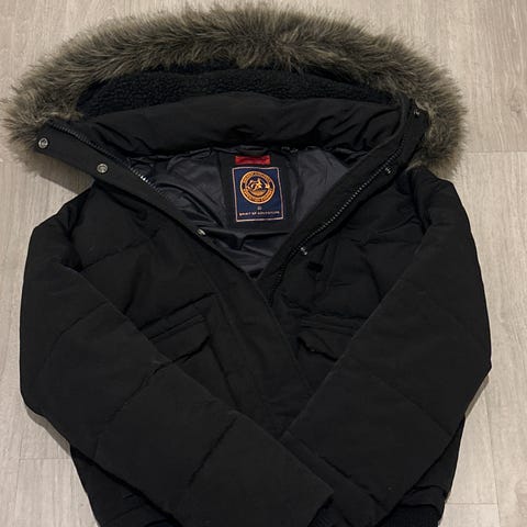 Supply & demand talvitakki lämpimällä karva hupulla. Takissa on musta väri ja lämmin toppaus. Hupussa on sisäpuolella pehmeä vuori. Edessä on vetoketjukiinnitys sekä useita taskuja, mukaan lukien vetoketjullinen rintatasku. Hihassa on Supply & demand logo. Sopii kylmiin säihin arkikäyttöön. Maksu vain käteisellä ja koko on lasten L eli 12-13 vuotiaiden takki menee hyvin 150-160cm päälle