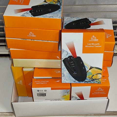 Siisti ja hyväkuntoinen alkometri. Toimii moitteettomasti. Mukaan säilytyspussukka, pillejä, autolaturi, käyttöohje, pakkaus