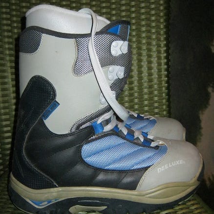 Burton lumilautakengät. Kengissä on korkea varsi ja nauhakiinnitys. Väritys on harmaan ja vihreän sävyinen, pohjat ovat vaaleat mustilla kuvioilla. Sopivat lumilautailuun ja muuhun talvikäyttöön, tarjoavat tukea nilkalle ja pitoa lumella ja jäällä. Kengissä on pehmustettu varsi ja vuori käyttömukavuuden lisäämiseksi.