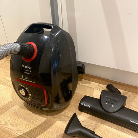 Bosch Serie 4 -pölynimuri. Väri valkoinen, musta letku ja putki. Perinteinen johdollinen lattiamalli, jossa säätönuppi imutehon säätöön. Laitteessa on letku, teleskooppiputki ja lattiasuulake. Sopii kodin yleiseen lattioiden ja mattojen imurointiin.