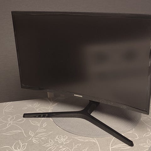 Kaareva 24” näyttö, joka sopii hyvin pelaamiseen tai ihan peruskäyttöön. Näytössä on jalusta ja takana liitännät, joihin kuuluu 2x HDMI- ja 1x DisplayPort-liitännät.