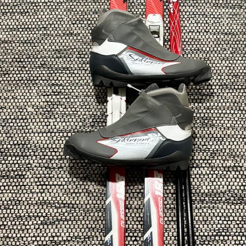 Yoko Optigrip Pitopohjasukset 175cm, sauvat ja Salomon monot koko 38 ( 23,5cm)