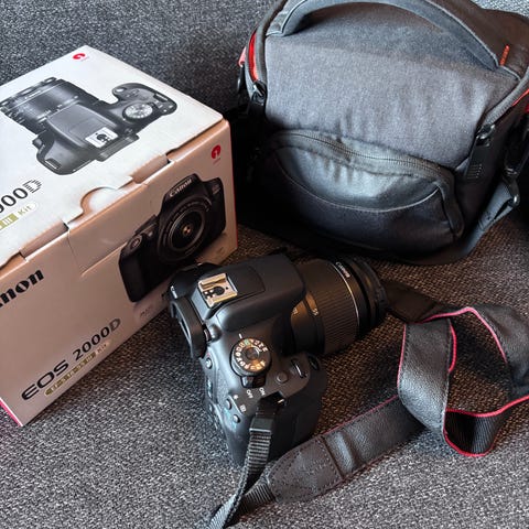 Mukaan akun laturi, näppärä kameralaukku ja Canon EOS- kirja