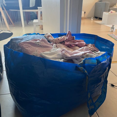 Kuvassa vain pieni osa vaatteista. Kassillinen poikien vaatteita koossa 50-56. Kassi sisältää housuja, bodeja, haalareita, fleese haalarin ja ohuita pipoja.