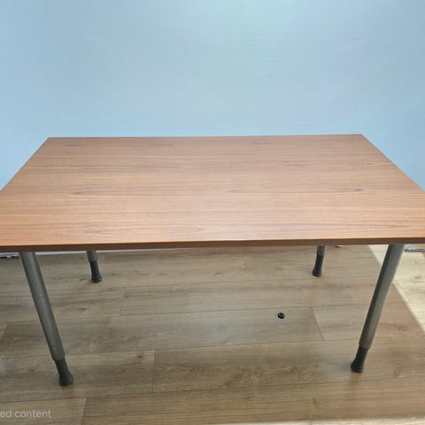 Pöydän takana on kahva, ja jos sitä kiertää, mekaaninen osa liikuttaa pöytää ylös ja alas. Erittäin hyvä ja vahva pöytä, eikä siinä ole ongelmia. Vahva ja tukeva. Pinta on puhdas.