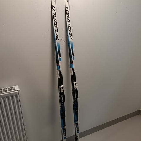 Myydään merkin Järvinen sukset. Suksien pituus 185, sauvojen pituus 120. Sauvoissa nahkaremmit. 80-luvulta