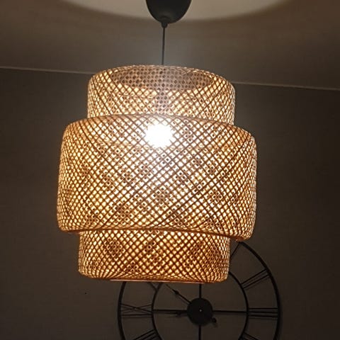 Uutena ostettu ja yhdessä huoneessa roikkunut valkoinen IKEA SKYMNINGEN -kattovalaisin