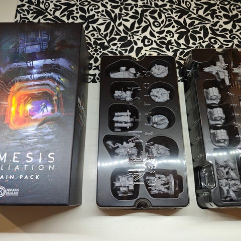 Hyväkuntoinen, laatikossa muutama 3D-tulostettu insertin osa, muut palaset lajiteltuina pusseissa tai rasioissa.