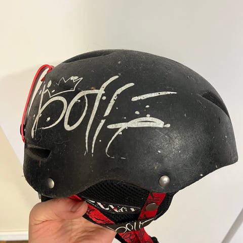 Erittäin siistissä kunnossa oleva kypärä lämpimällä sisustalla. Takana säätömahdollisuus sopivan kireäksi ja leuan alle tulevassa klipsissä myös säätömahdollisuus sekä pehmuste. Ollut yhdellä laskijalla satunnaisessa käytössä. (Muutamilla tarroilla koristeltu :))