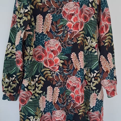 Ostan kuvan mukaisen Toive Company ribbi mekon värissä mahonki. Voi olla kokoa M tai L. T-paitamalli.