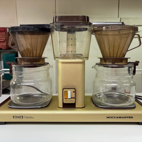 Moccamaster kahvinkeitin lasikannulla. Kannussa Halkeama.
