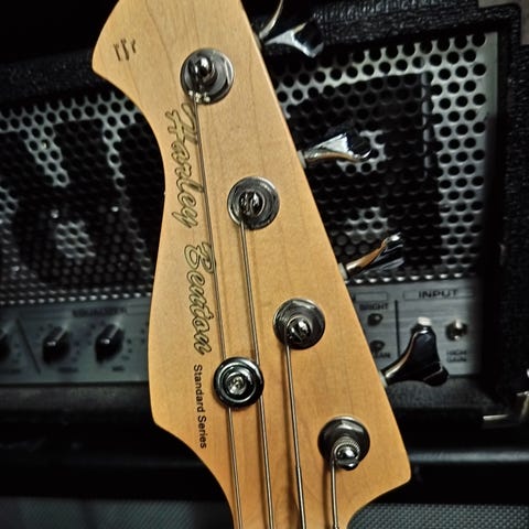 Huollettu ja säädetty soittoon. Perinteinen P-bass, joka tekee sen mitä pitää: napakka alapää, selkeä keskialue ja istuu bändimiksissä heti.