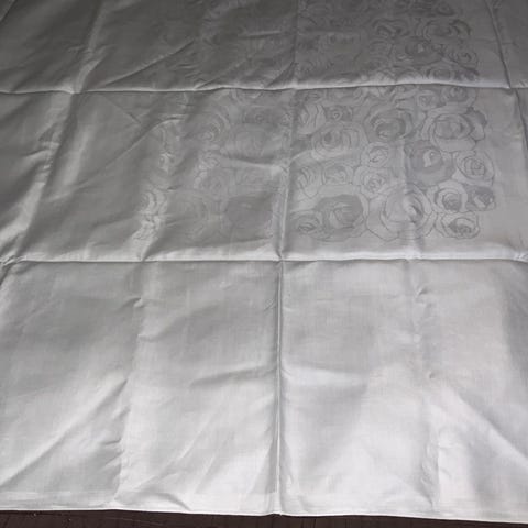 Myydään hyvässä kunnossa oleva suomalaisen designin klassikko: Dora Jungin suunnittelema ja Tampellan valmistama "Sata Ruusua" -pellavadamastiliina.