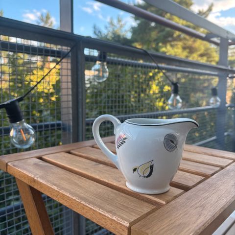 Arabia kermakko. Materiaalina posliini ja värinä vaalea sävy. Sopii kerman, maidon tai kastikkeiden tarjoiluun kattauksessa.