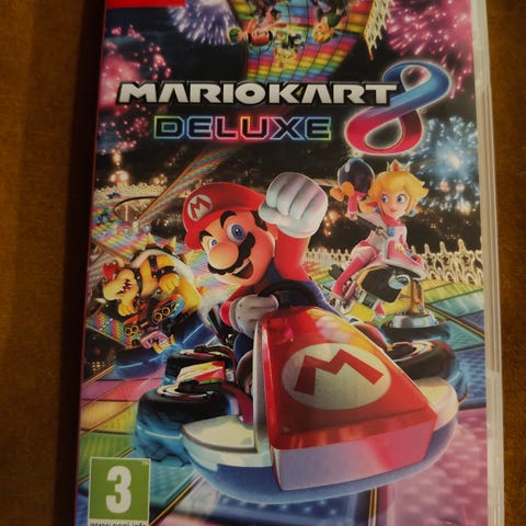 Nintendo Mario Kart 8 Deluxe peli Nintendo Switch -konsolille. Fyysinen versio, sisältää pelikasetin ja kotelon.