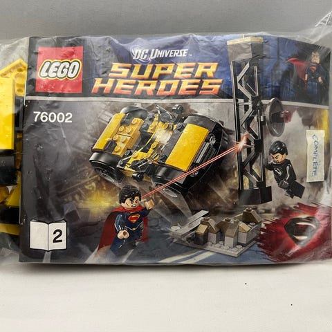 Myydään kaksi settiä DC universe Super Heroes nro 6858 ja 76009. Setissä 6858 timantti vaihdettu eriväriseksi, muut palat tallessa. Setissä 76009 hahmon viitta puuttuu, lisäksi kolme palaa puuttui, jotka korvattu samanlaisilla, mutta eri värisillä paloilla. Kunto hyvä.