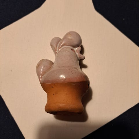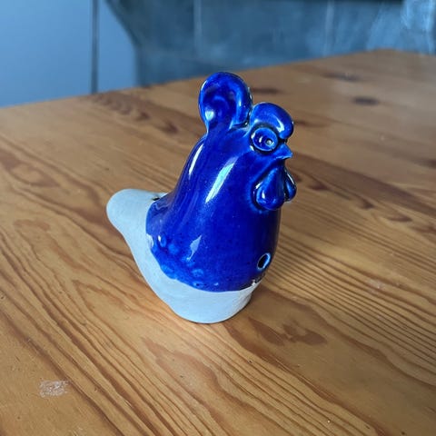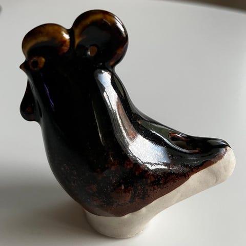 Kermansaven mustaharmaa keramiikka kukkopilli. Tarra vielä kiinni ja tosi hyvässä kunnossa!