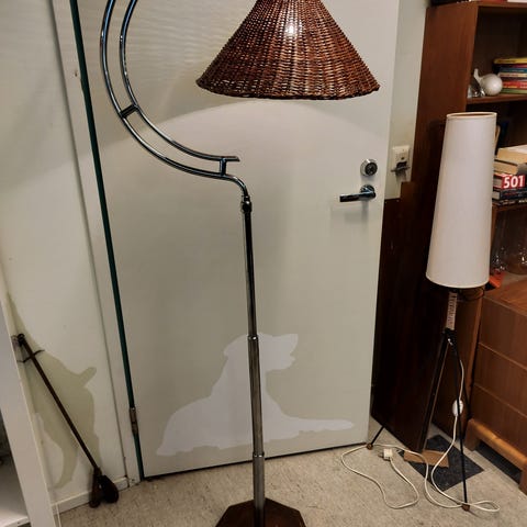 "Bauhaus" Art deco tyyliset valaisimet Kiillotettu kromi. Korkeus 39cm Lasikupu