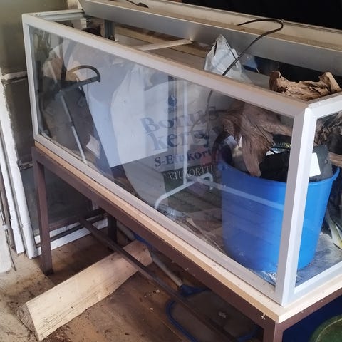 Akvaario ja jalusta, akvaario kalat ja eläimet, kasvis ja koristeet