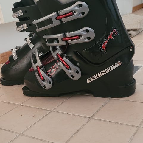 Tecnopro laskettelumonot. Neljä solkea ja tarrakiristys varressa. Soveltuvat rinnelaskuun. Koko 26- 26,5 (mondokoko).