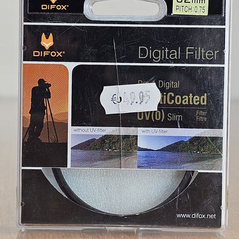 Ilman linssiä jäänyt Tiffenin 52mm Glimmerglass -filtteri. Erinomaisessa kunnossa.