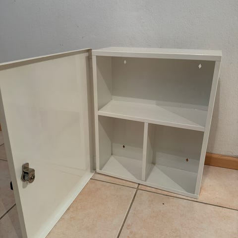 Myydään vanha lääkekaappi avaimella, mitat 51x41x18cm. Käytön jälkiä näkyy kuvissa.