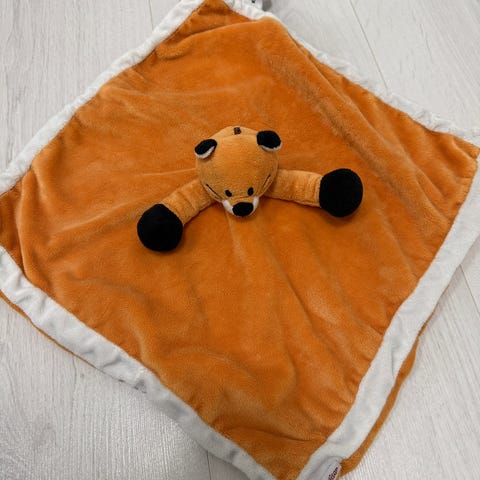 Teddykompaniet Floppys unirieppu. Pehmeä, neliönmuotoinen vaaleanbeige rieppu, jonka keskellä on pupuhahmo korvineen. Sopii vauvoille ja pienille lapsille turvarievuksi tai unikaveriksi. Materiaali on pehmeää kangasta, joka tuntuu miellyttävältä ihoa vasten.