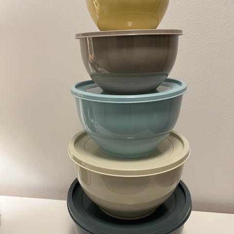 Muovikulho irrotettavalla kannella. Terveellinen ja uudenveroisessa kunnossa, sopii ruoan säilytykseen, sekoittamiseen ja tarjoiluun keittiössä.