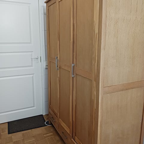Annetaan vaatekaappi. Osa sisähyllyistä rikki.