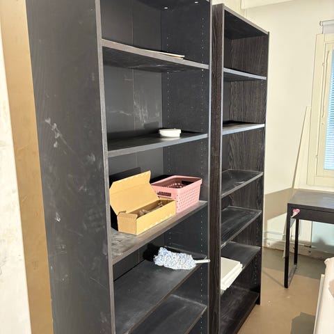 Hyväkuntoinen valkoinen Ikean Brimnes-kirjahylly. Tässä mustan vastaavan tiedot: https://www.ikea.com/fi/fi/p/brimnes-kirjahylly-musta-40301223/