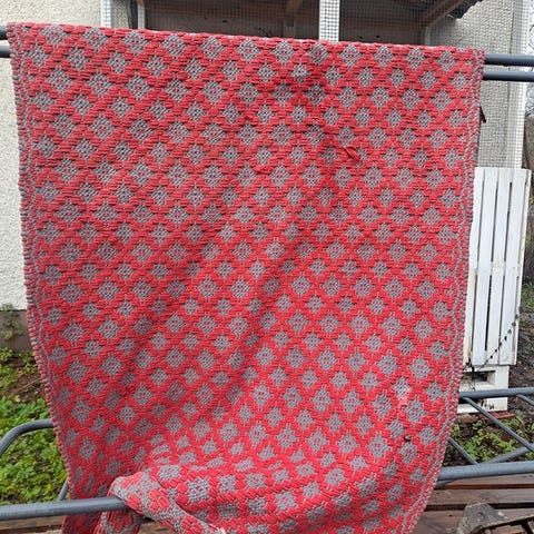 Kuvan siisti keinutuolin matto kaapin perukoilta. Mittoja saa pyydettäessä.