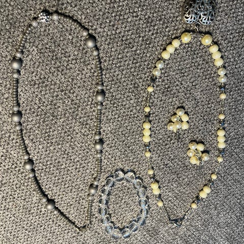 & Other Stories naisten kaulakoru, valmistettu muovista ja teräksestä. Korussa on useita helmi- ja ketjumaisia osia, joissa yhdistyvät muoviset koriste-elementit ja metallinen teräsketju. Sopii käytettäväksi arki- ja juhla-asujen kanssa tuomaan lisäyksityiskohtia asukokonaisuuteen.
