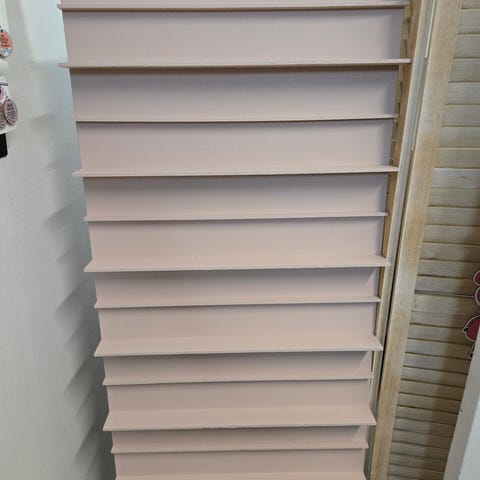 Koivuvanerinen myyntihylly / esittelyteline esim. koruille tai muille pienille tuotteille.