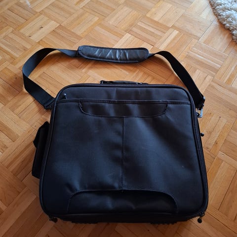 Myydään muutaman kerran käytetty Dellin tietokonelaukku. Useita taskuja ja kaksi isoa lokeroa.