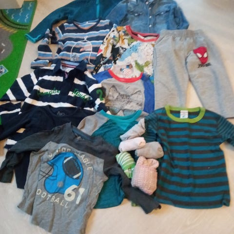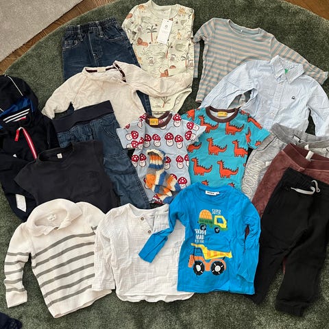 Todella iso vaatepaketti pojalle tai vaikka unisex. Koko 86 ja 92. Hyväkuntoisia vaatteita. Parissa pienet haaleat tahrat, niistä maininnat kuvateksteissä. Merkkejä mm. Polarn O. Pyret (POP), Nosh, Name It, H&M, Cubus, Pomp de lux, Disney autot.