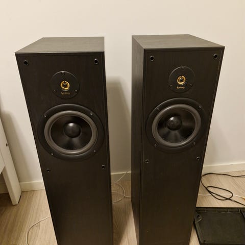 Todella kauniisti sopivat kaiuttimet. Siistissä kunnossa, ainoastaan pohjassa muutama naarmu pianolakatussa pinnassa.