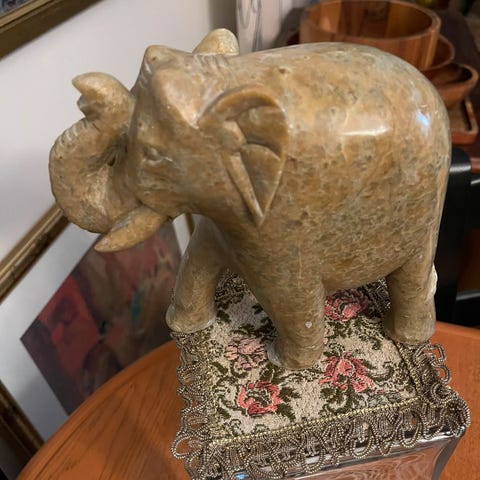 Iso kokopuinen norsupatsas, veistetty yhdestä puusta. paino n.75kg, korkeus n.1m pituus 80cm leveys 40cm. Hinta 220/tarjous. Kuljetus onnistuu nokkakärryllä sisälle. Patsas Kuopiossa, kulkeutuu ostajalle välille Kuopio-Helsinki 22.2-Patsas Kuopiossa, kulkeutuu ostajalle välille Kuopio-Helsinki 22.2-23.2. kuten myös muut myynnissä(Kuopiossa) olevat tavarat.