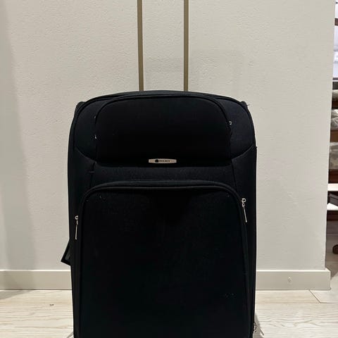 Myydään it-merkkinen matkalaukku, minkä koko vastaa käsimatkatavaraa. Laukussa on renkaat, minkä avulla sitä voi vetää helposti ja kevyesti perässä. Laukun ulkomitat ovat: korkeus 55 cm, leveys 35 cm, syvyys 20 cm. Sisäpuolella on toisella puolella verkkokangas pitämässä tavaroita paikoillaan. Verkossa on pieni reikä.