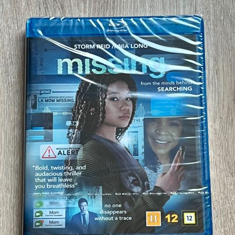 Missing (blu-ray), 2023, K-12. 1h 50min. Ostaja maksaa postikulut ja noutaakin voi Tampereelta. Storm Reid & Nia Long.