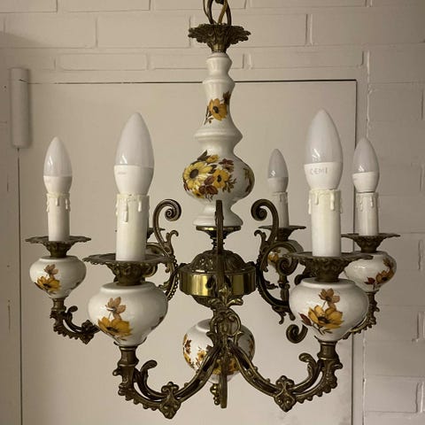 Myydään käsityönä valmistettu Aidoista poronsarvista kattovalaisin