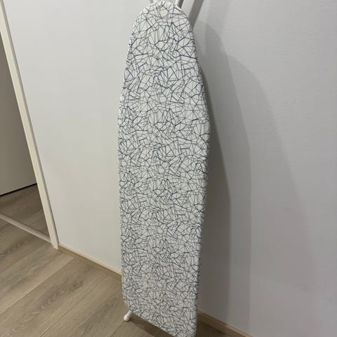 IKEA silityslauta. Valkoiset metallijalat ja kuviollinen päällinen. Soveltuu vaatteiden ja kodintekstiilien silittämiseen kotikäytössä. Korkeus säädettävissä käyttäjän tarpeen mukaan.