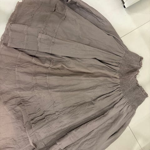 Myydään käsityönä tehty puuvillainen asukokonaisuus.