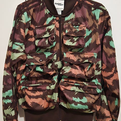 Adidas wings+horns takki ruskeassa sävyssä. Pitkä malli, jossa kaulus ja etutaskut. Hihansuissa joustavat resorit. Sisäpuolella suuri Adidas-trefoil -logo ja ulkopuolella pieni pyöreä logohelmi. Materiaali on villakangasta. Ovh 700€