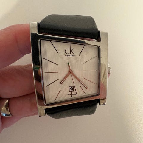 Vähän käytetty mutta nahkainen ranneke hieman kärsinyt, ei haittaa käyttöä. Alkuperäisessä laatikossa. Ostettu 2012.