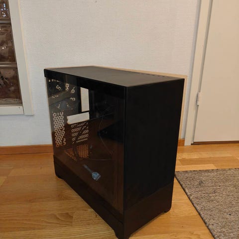 Myydään pakettina Cooler Master mATX -kotelo (MasterBox Q300L) ja Corsair CX550M virtalähde. Kotelossa on jalat pysty ja vaakakäyttöön. Tummennettu läpinäkyvä sivupaneeli on pleksiä. Pleksissä on naarmuja mutta kotelo on muuten siisti. Ruuveja on emolevyn ja näytönohjaimen kiinnittämiseen, mutta kovalevyjen ruuvit puuttuu. Paikka ainakin yhdelle 2,5 tuuman SSD:lle. Takana yksi 120mm tuuletin. Pölysuojat päällä, edessä ja pohjassa.