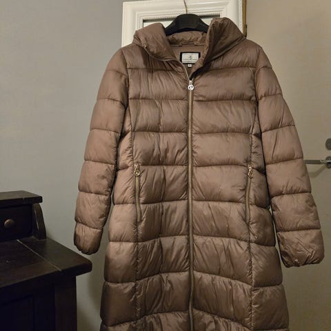YAS-merkkinen pitkä talvitakki kuvioinnilla. Vaaleanpunainen, beige, ruskea ja musta väritys. Takki on TALL-versio, eli helma on extrapitkä. Kokomerkintä M, mutta menee 40-44-kokoiselle. Takana kiristettävät nyörit, joilla takkia saa muotoiltua. Edessä fleecatut nepparitaskut ja vetoketju. Hihoissa resorit, jotka pitävät kylmän ulkopuolella. Todella lämmin ja mukava, joten sopii hyvin paukkupakkasiinkin! Ollut vähäisessä käytössä, ostettu viime talvena, ovh. 169,95€